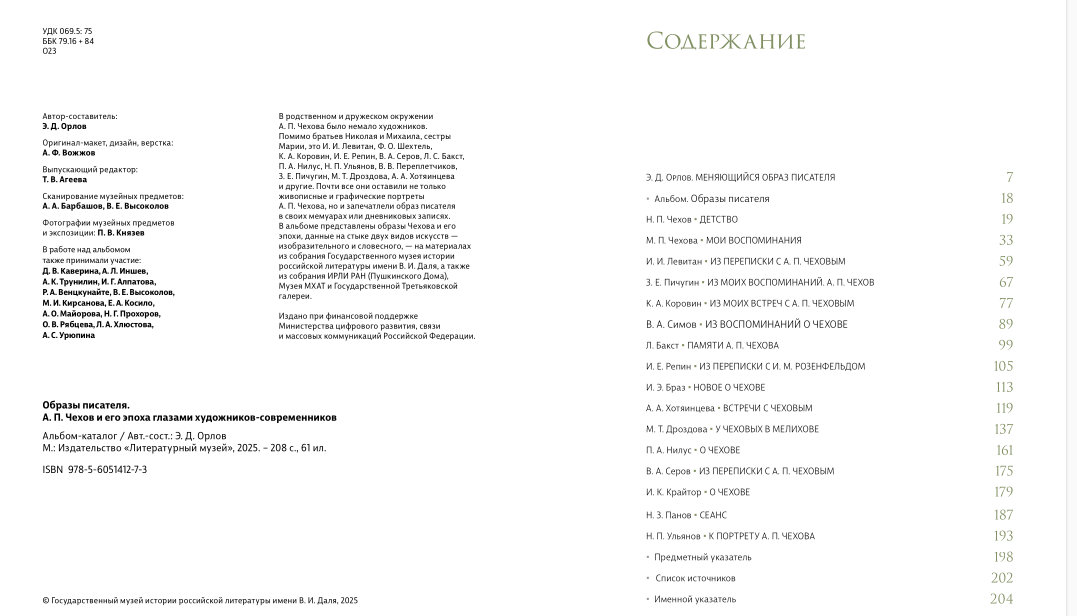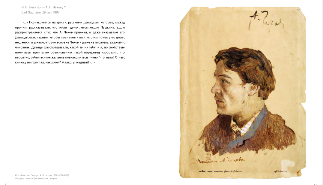 В альбоме представлены образы Чехова и его эпохи, данные на стыке двух видов искусств – изобразительного и словесного, – на материалах из собрания Государственного музея истории российской литературы имени В.И. Даля, а также из собрания ИРЛИ РАН (Пушкинского дома), Музея МХАТ и Государственной Третьяковской галереи.